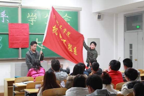 本次換屆大會由上一任學生會主席陳亮主持,他首先向大一新加入的干事介紹了我系學生會的作用與宗旨。隨后一一介紹各部新任部長上臺發表就職演說,演說精彩紛呈,引得臺下陣陣掌聲。演說畢后,由輔導員杜寶芹老師對上一屆學生會所取得的成績做出了肯定,并對新一屆的學生會給予了厚望。最后由鄒書記做出了總結并提出希望:希望新一屆學生干部繼續全心全意為同學服務,做好以后工作的規劃,并且同時妥善處理好學習與工作的關系。