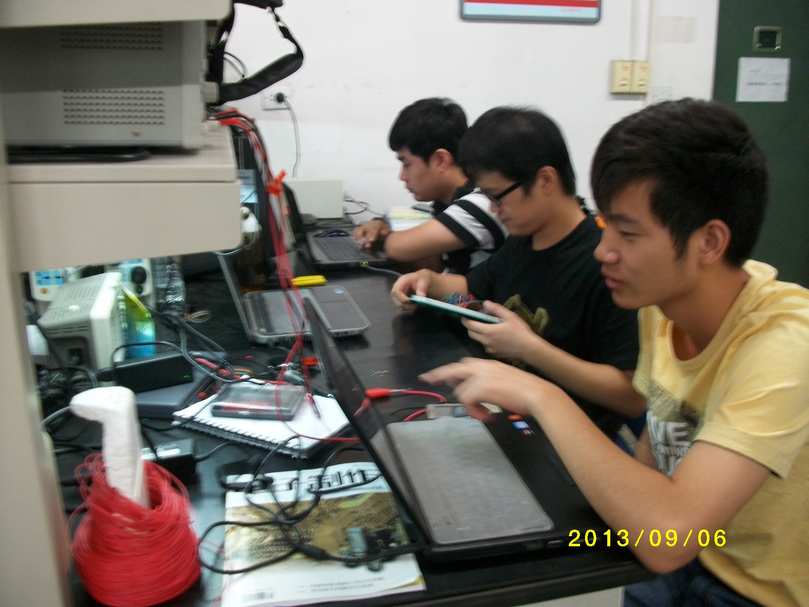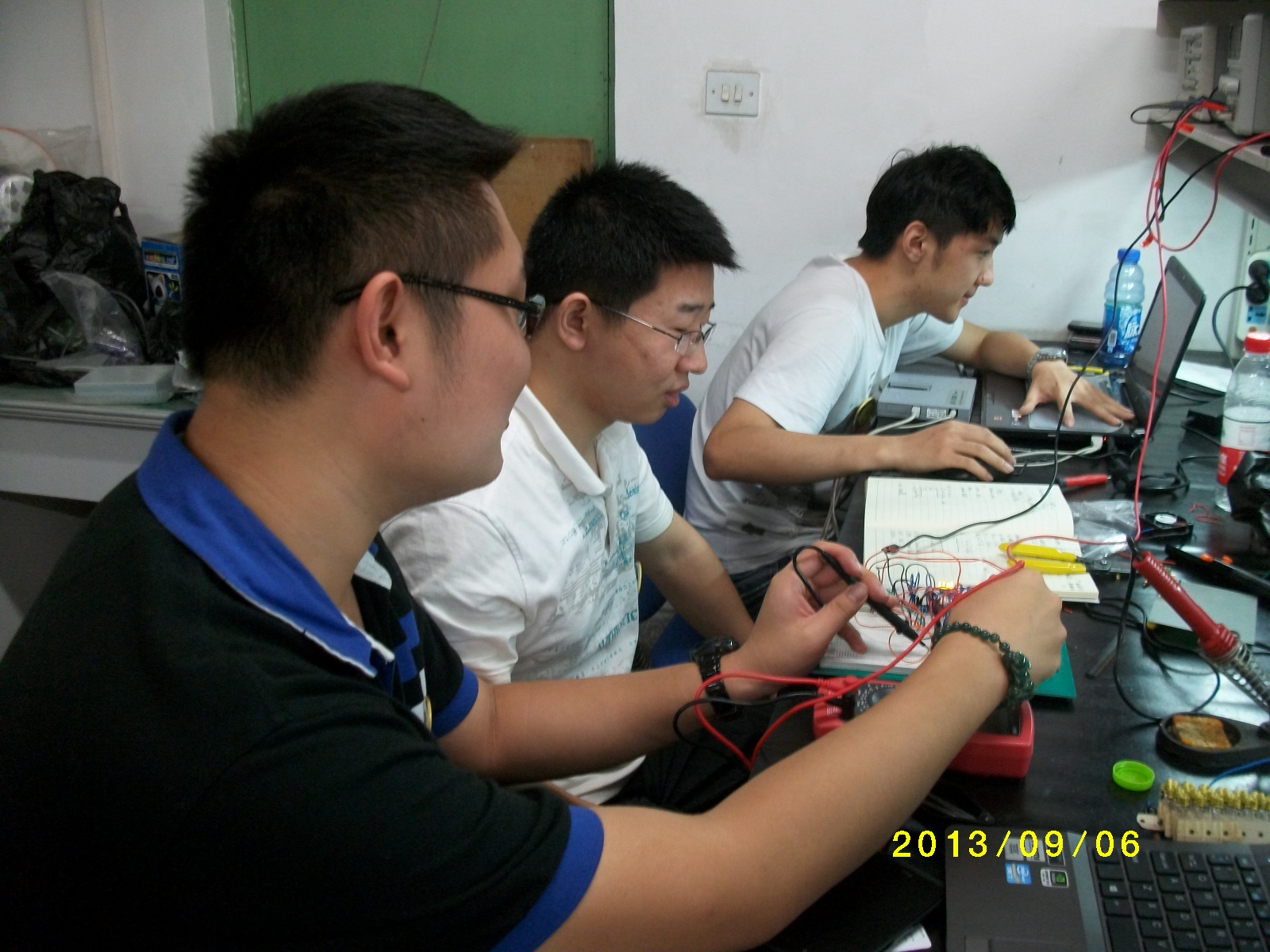 ??圖為我系學(xué)生參加2013年全國大學(xué)生電子設(shè)計(jì)競賽時調(diào)試作品的照片。