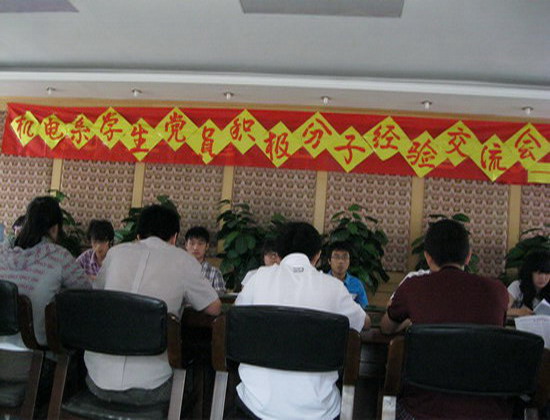 ? 值建黨89周年之際,機電系黨支部于2010年6月11日下午1:00點,在一階梯會議室隆重召開學生黨員、積極分子經驗交流會。出席此次經驗交流會的均為機電系學生黨員和積極分子代表及各班優秀學生代表30余人。此次經驗交流會的目的是通過學習與交流促進大家對新時期的黨建工作有一個新的認識。通過優秀學生黨員和積極分子的發言,分享他們的經驗,從而使廣大學生更加積極向黨組織靠近,進一步端正入黨動機。