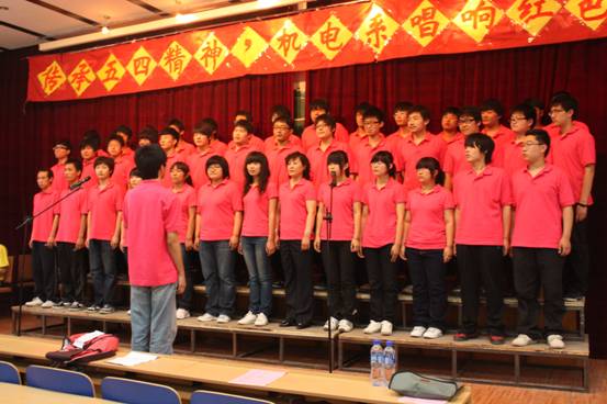 ????? 2010年5月21日下午,機電系在新階梯教室舉辦了主題為“傳承五四精神,機電系唱響紅色五月”的歌詠比賽,全系08、09級的16個班級在班主任老師的帶領下全部參加了比賽。經過激烈的角逐,電氣091班摘得一等獎桂冠,二等獎花落電氣082、制冷091班,計輔081、機設091、汽修091榮獲三等獎。