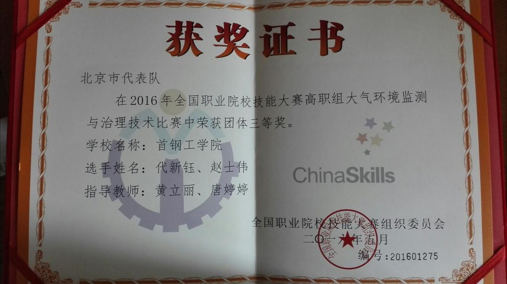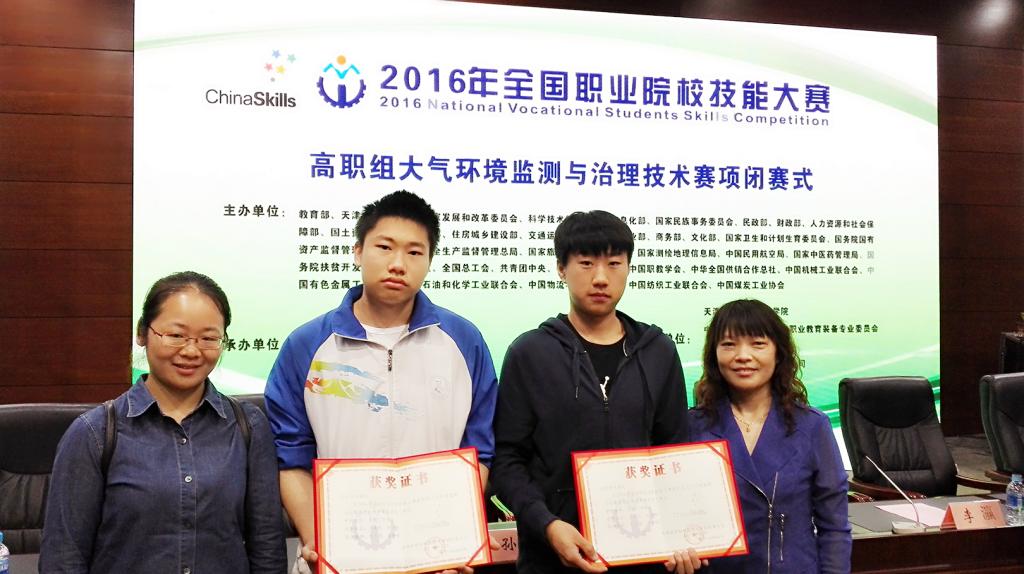 2016年全國職業院校技能大賽高職組“大氣環境監測與治理技術”賽項,于2016年5月11日至13日在天津現代職業技術學院舉辦,建工系環境工程技術專業環工141班代新鈺、趙士偉兩位同學不負重望,從39支參賽隊中脫穎而出榮獲了國賽三等獎的好成績。