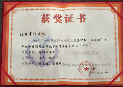 --2015年全國職業(yè)院校技能大賽“大氣環(huán)境監(jiān)測(cè)與治理技術(shù)”賽項(xiàng)喜獲三等獎(jiǎng)