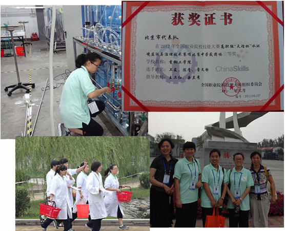 ????? 2012年6月24日至26日,在院長和教務處的率領下,我系教師王衛紅和岳蘭秀指導的環境監測與治理技術專業衛薇、陳青、晉文靜同學參加了由教育部、文化部、人力和社會保障部以及天津市人民政府等23個部委、聯合會主辦的全國職業院校技能大賽——高職組.水環境監測與治理技術賽項,取得了團體三等獎。此次比賽的38支參賽隊是從22個省市舉辦的初賽中遴選出的優秀代表隊。