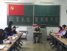 首鋼工學院經管系黨支部于2016年4月20日下午14:00在8號樓304教室隆重召開“經管系學生黨員發展大會”。本次大會由黨支部書記劉建華同志主持,出席大會的共有14名教師黨員,8名學生黨員發展對象,14名學生積極分子。