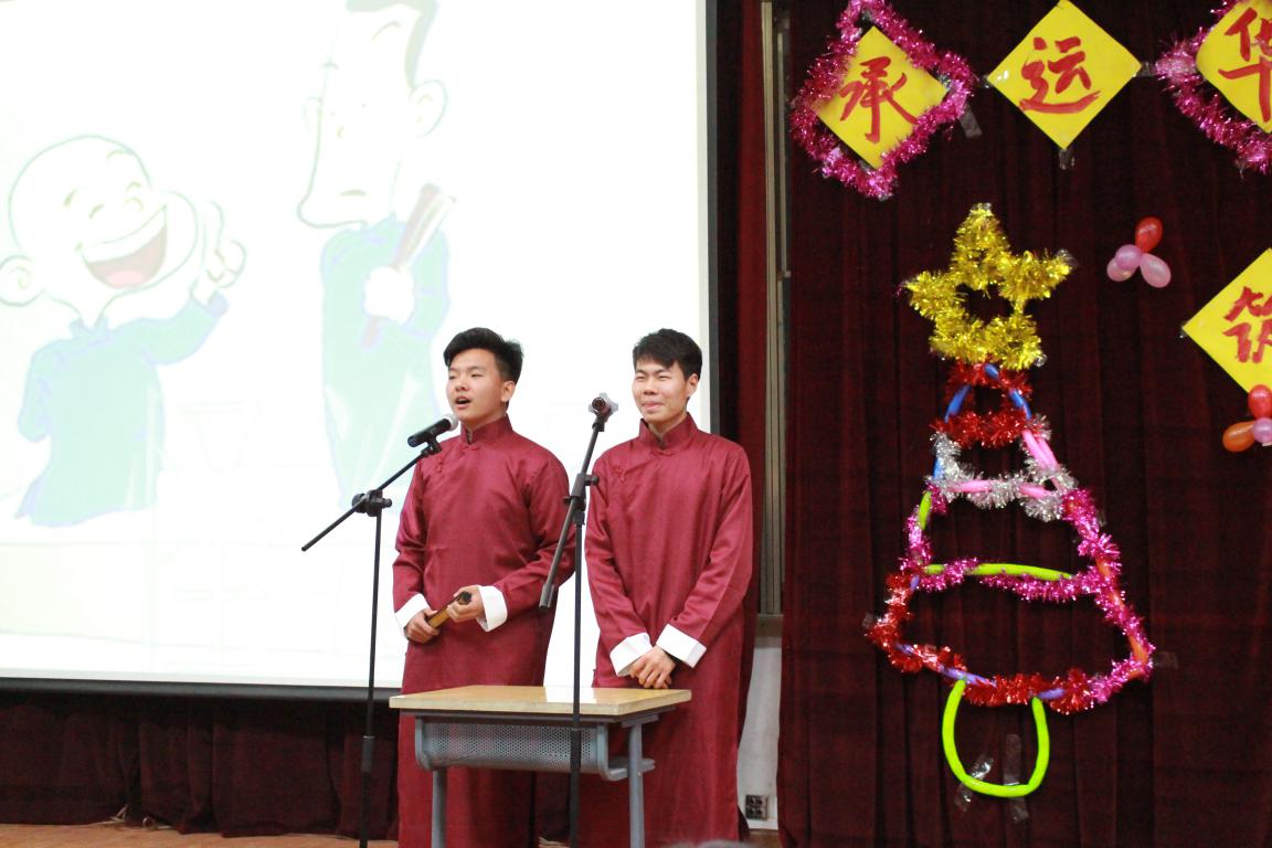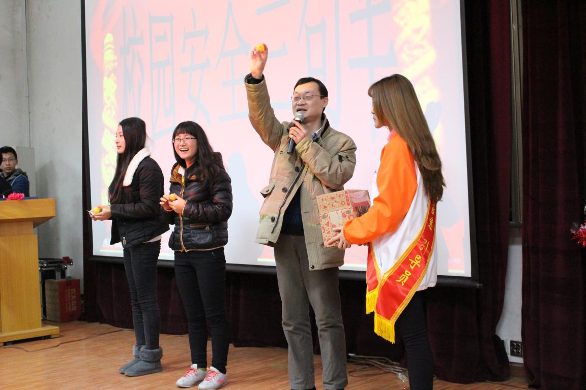節目中場,穿插了兩輪抽取幸運大獎環節。抽獎禮品十分豐厚,一等獎是由天貓贊助的大禮包,內含生活用品及零食,釣足了現場同學們的胃口。每位觀眾在進場時都會得到一個號碼,隨著劉主任、秦老師、竇老師的中場抽獎,幸運之神降臨到了許多同學的頭上,獲獎同學們臉上洋溢著幸福的微笑,憧憬著新春的夢想。