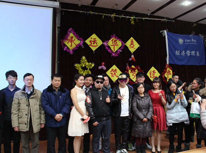 時光飛逝,難忘的2015逐漸接近尾聲,2016新年的鐘聲即將敲響。為了給2015年劃上一個圓滿的句號,為2016年迎來一個嶄新的開始,經管系于2015年12月23日在新階梯隆重舉辦了以“承運華夏,筑夢經管”為主題的文藝聯歡會。我院學生處張衛國處長、院團委秦川書記、經管系劉建華主任及輔導員竇煒老師、朱瑩老師、楊彪老師和王春祺老師及部分班主任出席了本次聯歡會。