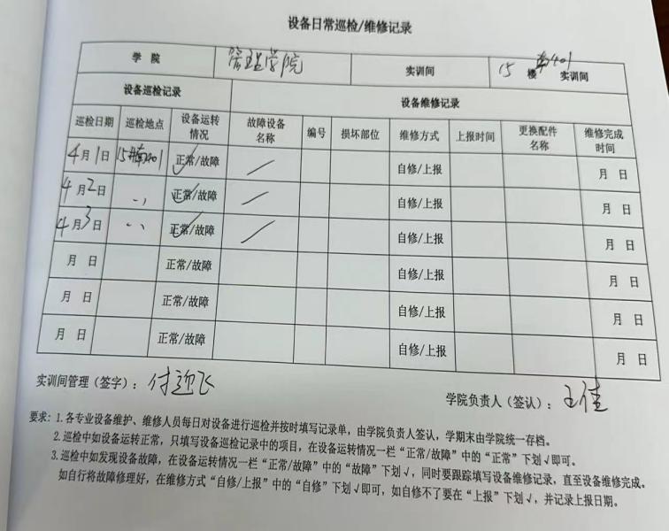 圖6:管理學院15#南401實訓室管理員自檢完畢