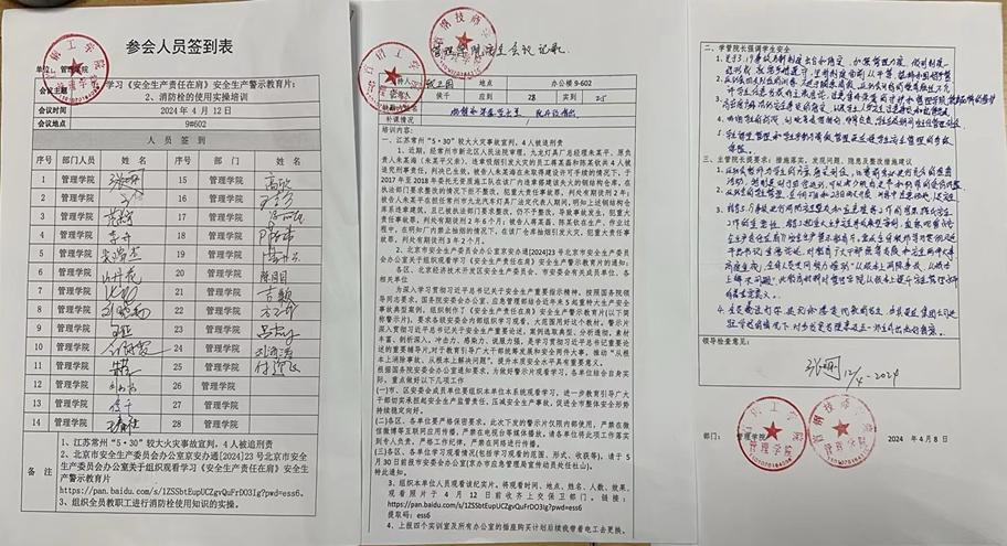 管理學院在開展全員安全培訓的同時,及時將本部門安全臺賬記錄、自檢材料等上報保衛部門,配合集團專業部門開展的督導檢查。