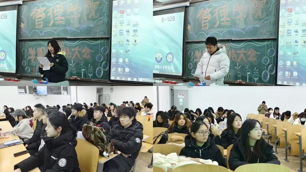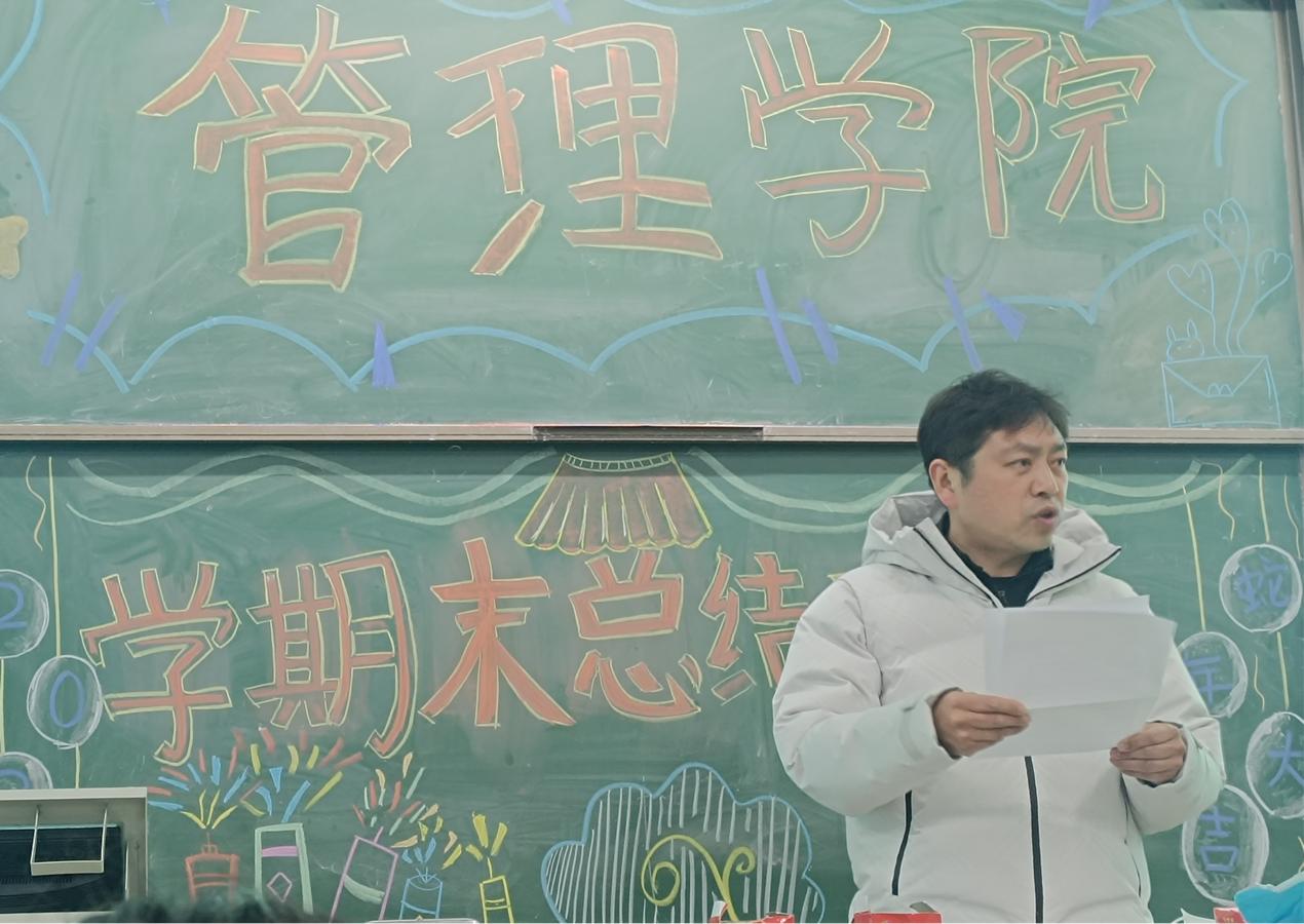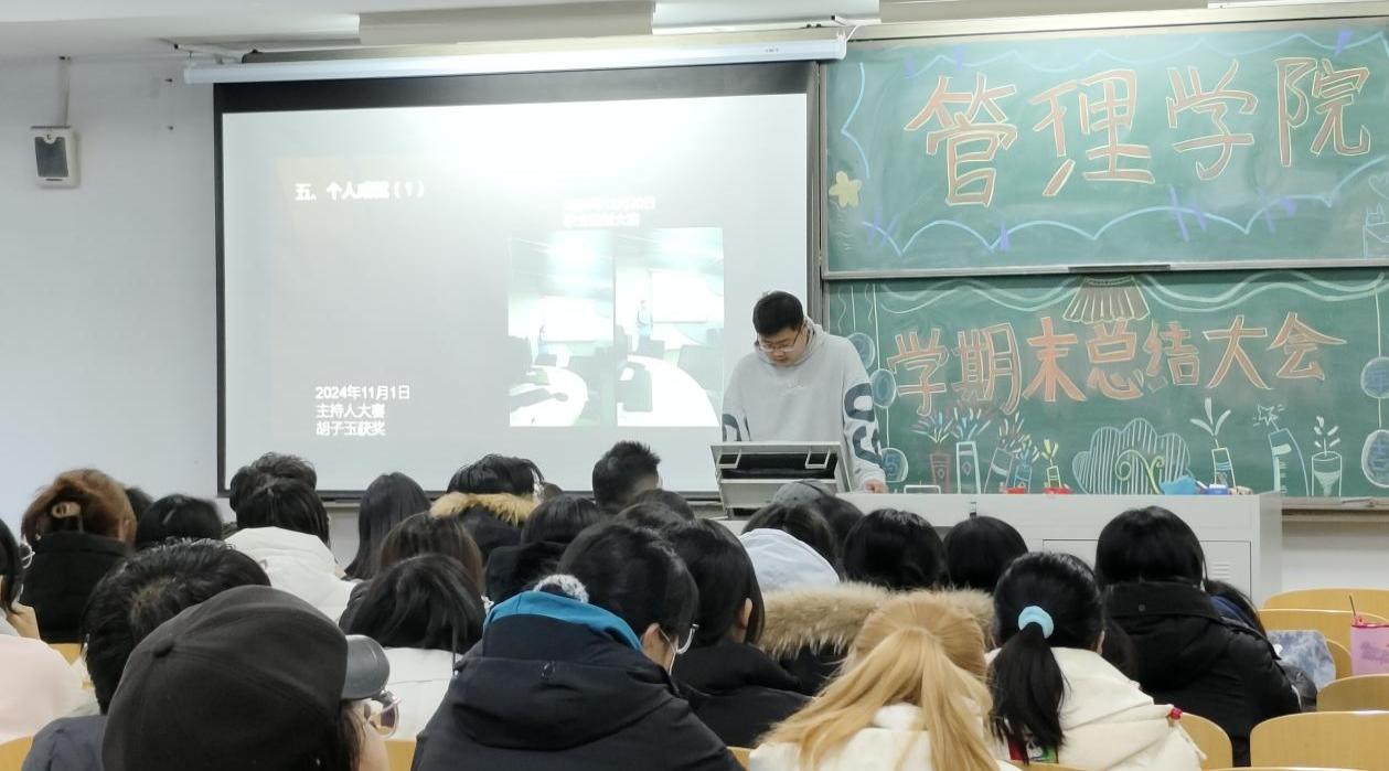 歲序常易,華章日新。在歲末之際,管理學院學生干部齊聚一堂,于1月8日12:30在8號樓109舉行了一場莊重而熱烈的學期末總結大會,共同回顧往昔辛勤耕耘之路,展望未來熠熠生輝之景。管理學院范光宇副院長、輔導員朱瑩老師、劉虹怡老師親臨現場。