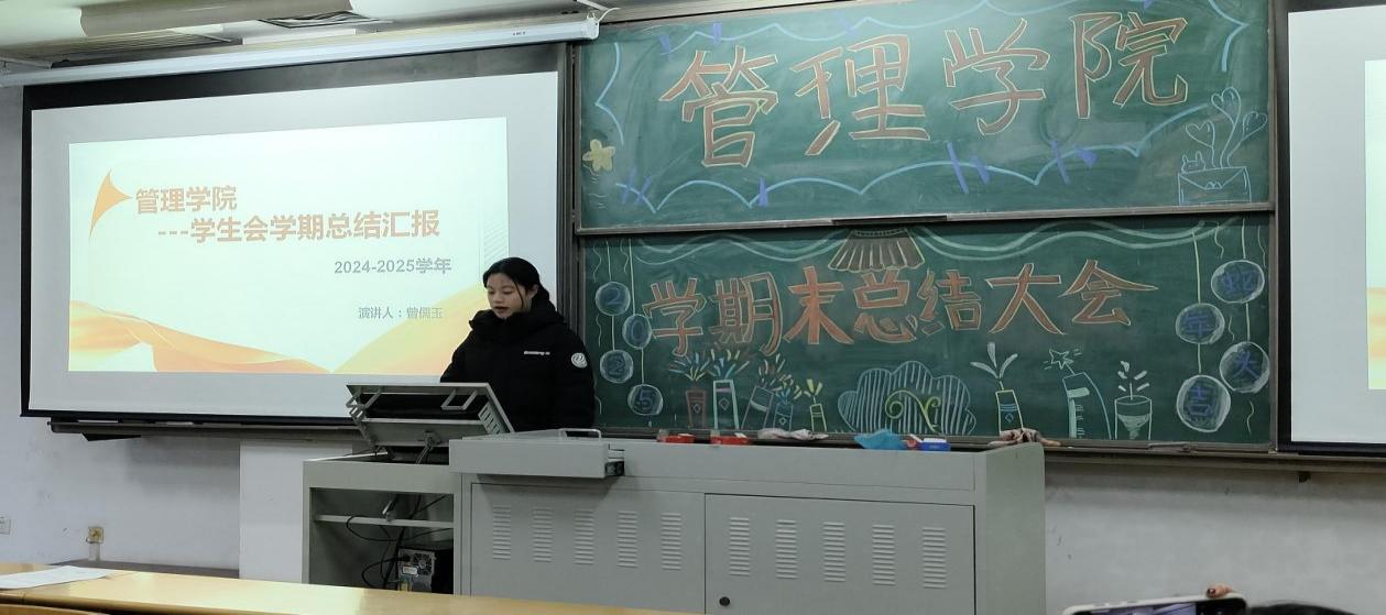 主席團執行主席曾儒玉全面回顧了本學期學生會的工作歷程與成果。本學期,管理學院學生會在主席團的帶領下,組織開展了豐富多彩的校園活動,包括學術講座、文體賽事、志愿服務等,在促進學生全面發展方面發揮了重要作用。主席團的成員們敢作敢為,吃苦耐勞,在組織協調能力和團隊合作精神等方面得到了顯著提升,為今后的工作積累了寶貴經驗。同時,也客觀地指出了工作中存在的問題與不足,如部分活動的細節考慮不夠周全、溝通反饋機制有待完善等,并針對這些問題提出了切實可行的改進措施和下學期的工作計劃,明確了學生會將繼續秉持“服務同學,鍛煉自我”的宗旨,不斷優化工作流程,提升服務質量,為學院的發展和同學們的成長貢獻更多力量,書寫更加精彩的篇章。