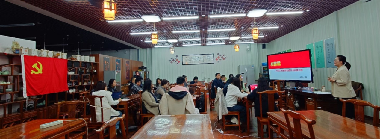 習近平總書記在二十屆中央政治局第十五次集體學習時指出“要善于運用互聯網技術和信息化手段開展黨建工作,努力實現黨的組織和黨的工作線下線上全覆蓋。”為落實總書記講話精神,進一步加強基層支部黨建工作,創新黨課學習途徑和方法,管理學院黨支部于4月2日在旅游專業茶藝實訓室組織了“AI黨建-AI助力黨建效能提升全場景訓練”黨課學習活動。
