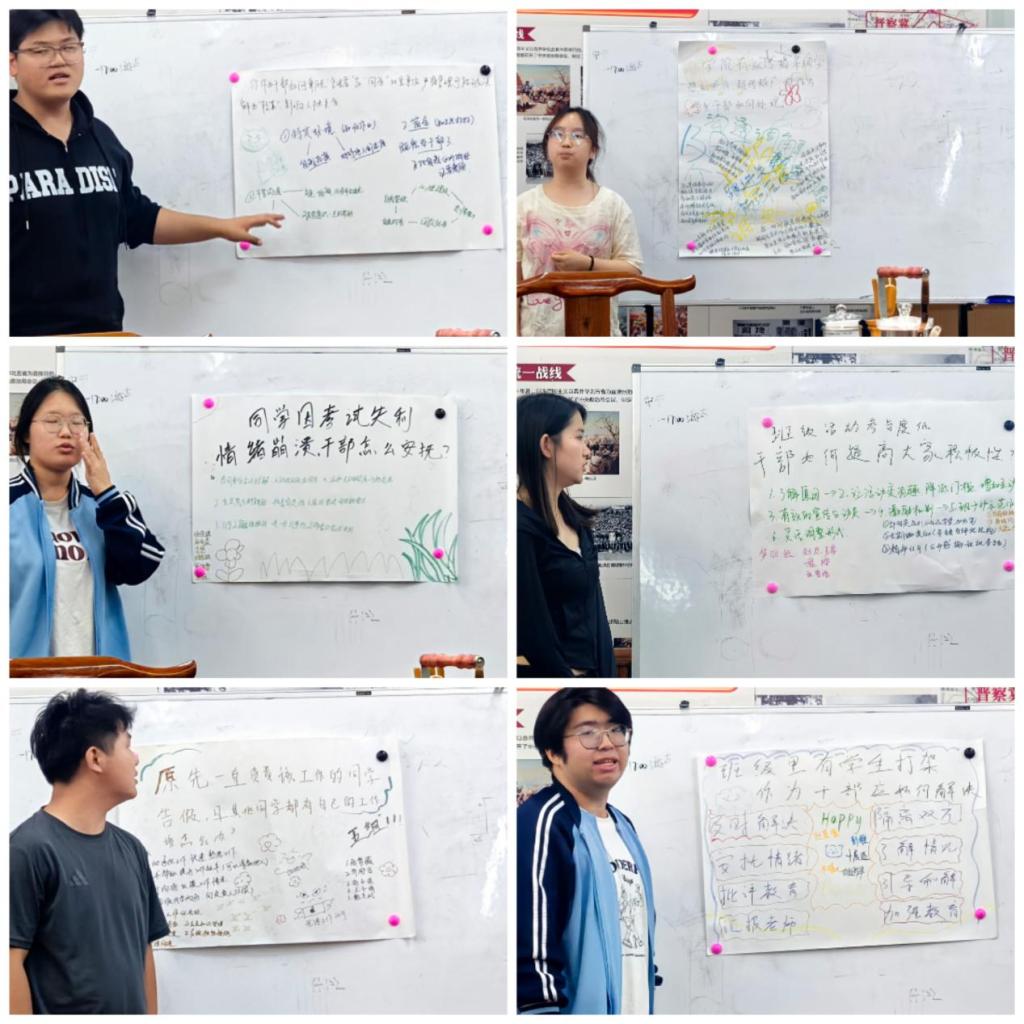 沙龍的首個環節是交流分享,圍繞“學生干部工作中常見問題”展開頭腦風暴。問題涉及:1.身為學生干部如何兼顧“管理者”與“同學”的雙重身份;2.同學考試失利情緒崩潰,學生干部怎么安撫;3.班級活動參與度低,學生干部如何提高大家積極性;4.班級里有學生打架,班干部應如何解決與應對;5.有同學傳播隱私照片,身為學生干部應該如何應對。與會學生干部結合自身經歷,通過分組討論和導師點評碰撞出熱烈的火花,對不同的問題都有不同的看法,大家共同梳理出解決方案,如建立任務清單優先級、運用“非暴力溝通”技巧化解矛盾等。學生干部們為解決問題而努力,為更好的服務同學而奮斗,為日常工作提供了新的思路。