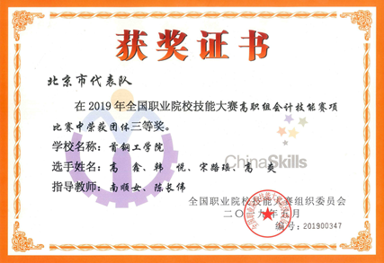 2019年,獲得北京市會計技能賽項“一等獎”;北京市管理會計賽項“一等獎”;全國職業院校會計技能大賽“三等獎”。
