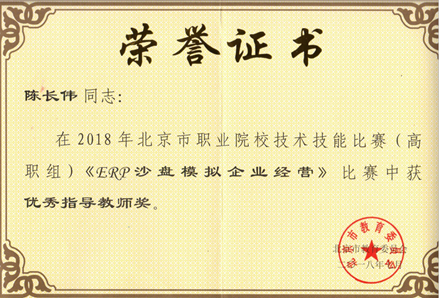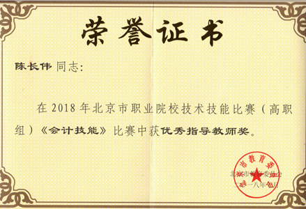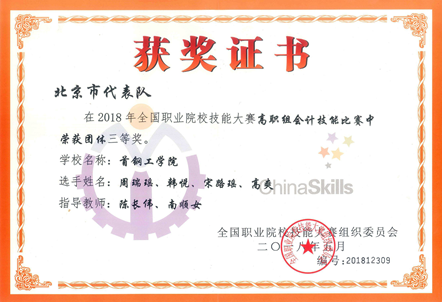 2018年,獲得北京市會計技能賽項“一等獎”;北京市ERP沙盤模擬企業經營賽項“一等獎”;全國職業院校會計技能大賽“三等獎”。