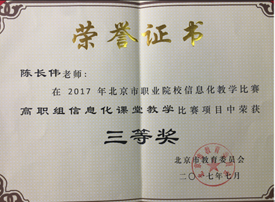 為響應北京市教委“以賽促教、以賽促學、以賽促改、以賽促建,以賽促合,崗課賽證融通,推動職業教育質量進一步提升”的號召,陳長偉同志積極參加教師能力大賽,并于2017年7月榮獲北京市教委“高職組信息化課堂教學比賽”“三等獎”;同時組織學生參與北京市教委主辦的會計專業賽項。從選拔學生環節開始,制定周密的訓練方案,周六周日和節假日不休息,尤其是會計技能國賽前的集訓階段,每天早上7點到校,晚上22點離校,陪伴指導學生訓練;除了陪伴指導訓練,陳長偉同志還視學生為親人,視學生為家人,在訓練期間,在家里制作精美餐食帶給參賽集訓學生,自費陪伴生病學生到醫院看病,讓學生體會到學校和老師的關心和厚愛。同時對她們進行教育引導,心理疏導,減輕壓力,以飽滿的精神狀態參賽。