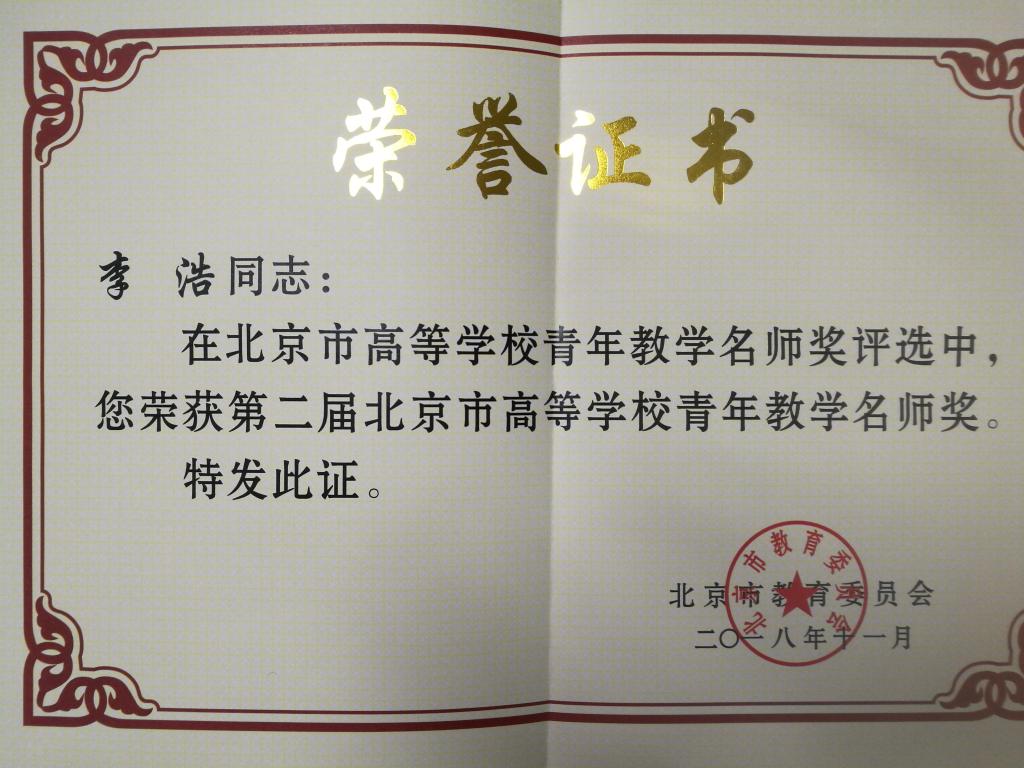 李浩,控制理論與控制工程專業副教授,電氣自動化技術專業負責人,電氣自動化教研室主任,獲得2018年第二屆北京市高等學校青年教學名師獎。