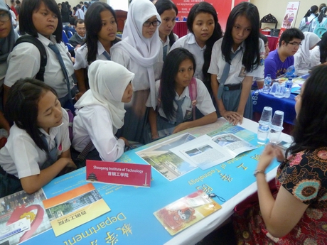 第一場、第二場推介會,分別安排在印尼雅加達蘇加諾樓教育廳、日惹教育廳辦公地點舉行。展會開幕式隆重熱烈,當地教育廳廳長、駐印尼大使館參贊、華僑協會首領、北京市國際教育交流中心副主任張偉等分別在開幕式上致詞、講話,印尼政府官員、華僑代表和來自當地大學、中小學的學生代表參加了會議。北京14所院校分別精心布置展臺,熱情接待前來咨詢的學生、老師和家長。在雅加達、日惹推介會上首鋼工學院分別接待學生56人次和75人次。展會上就學生和家長咨詢涉及的留學動態、學科專業、漢語學習、簽證信息、獎學金政策等方面問題進行了交流和介紹。
