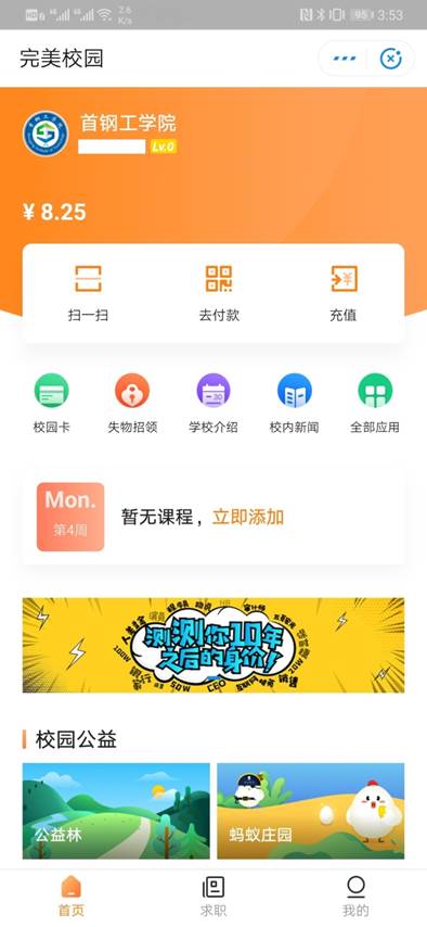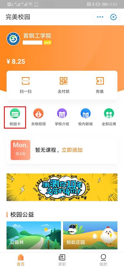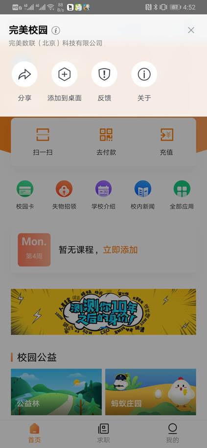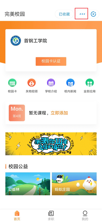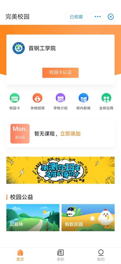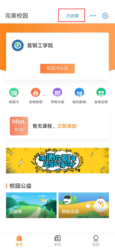 收藏完美校園小程序或添加到桌面