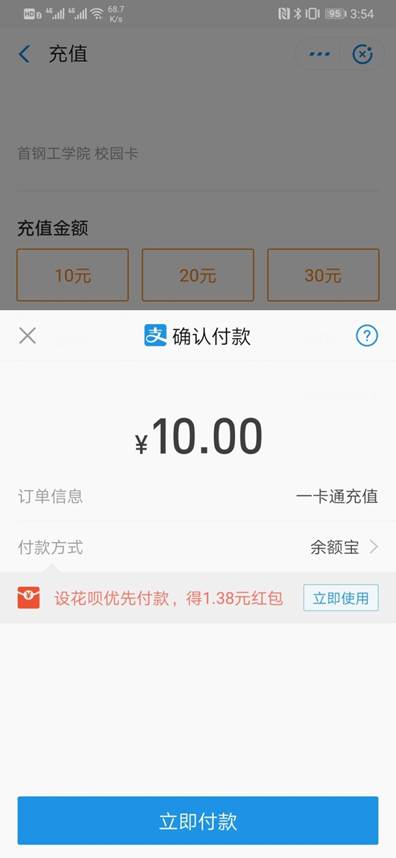 綁定校園卡后充值