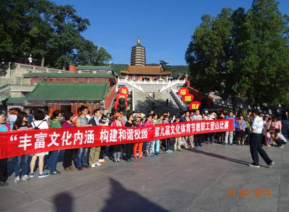 9月19日,培訓中心工會主辦的以“豐富文化內涵 構建和諧校園”為主題的第九屆文化體育節登山比賽在八大處公園舉行。 上午8:00,來自各分會的180多名教職工興致勃勃地來到了集合地點,熱情參與這一年一度的體育盛會。在八大處二處廣場,舉行了簡短的賽前儀式,培訓中心工會副主席李冬華強調了安全注意事項,并為登山比賽下達“出發”口令。