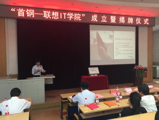 首鋼工學院校企合作喜結碩果。2015年5月20日,“首鋼-聯想IT學院”成立暨揭牌儀式,在首鋼工學院隆重舉行。首鋼工學院信息工程系安晏輝主任就“首鋼-聯想IT學院”成立的背景和下一步計劃開展的工作進行了介紹。聯想集團教育培訓事業部王魯總經理對聯想集團在建立校企合作培養機制,使人才培養融入企業生產服務流程和價值創造過程的有關情況進行了介紹,首鋼工學院張毅助理作了熱情洋溢的講話,祝賀“首鋼-聯想IT學院”的成立并表示學院將大力支持“首鋼-聯想IT學院”的建設,希望“首鋼-聯想IT學院”的建立在師資隊伍建設和學生技能培養方面發揮示范引領作用。在熱烈掌聲中,張助理與聯想集團教育培訓事業部王魯總經理為“首鋼-聯想IT學院”揭牌。
