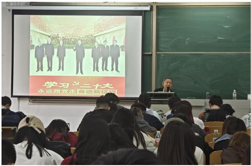 最后,趙教授結合當前國家發展的戰略目標,鼓勵學生 們將個人夢想與國家命運緊密相連,要勇于擔當,敢于創新, 以實際行動踐行黨的愿景目標,積極投身到實現中華民族偉 大復興的中國夢之中。