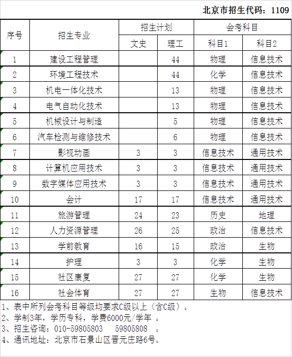 2019年面向北京市高考招生計(jì)劃