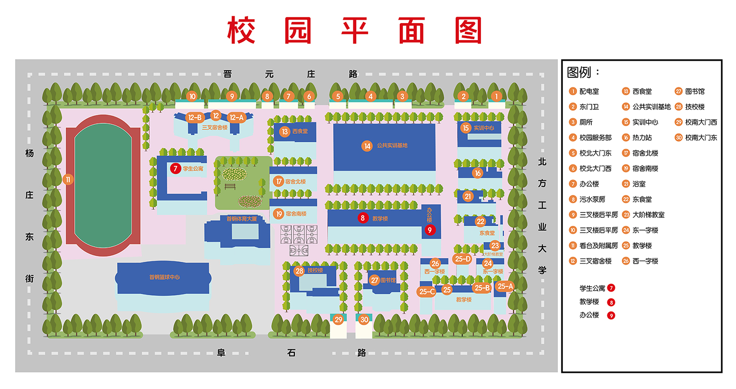 三、乘公交車或地鐵至阜成門站、或至白堆子站、或至西釣魚臺站換乘快速公交4線到楊莊東站下車,或乘公交車或地鐵至五路居站換乘快速公交4線支到楊莊東站下車,向東走300米即到學校南門。